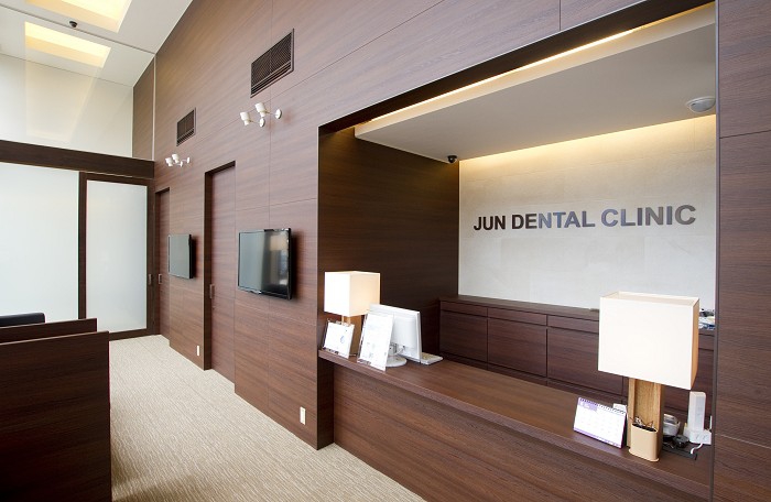 初めて来院される患者様には緊張されて訪れる方も少なくはありません。そこでジュン歯科クリニックでは、受付に患者さまに座って頂くための椅子を用意してお出迎えさせて頂きます。それに合わせて受付カウンターを低くし、受付を患者さまと同じ高さの目線に合わせる事で、患者さまの緊張を和らげ座ってゆっくりとお話して頂けるようになっております。